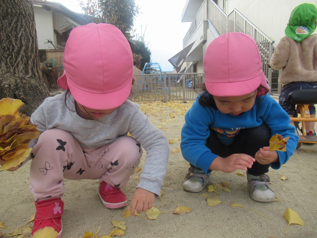 小春日和の中、「ハート形のイチョウがある~。」と喜んでいた子どもたち。