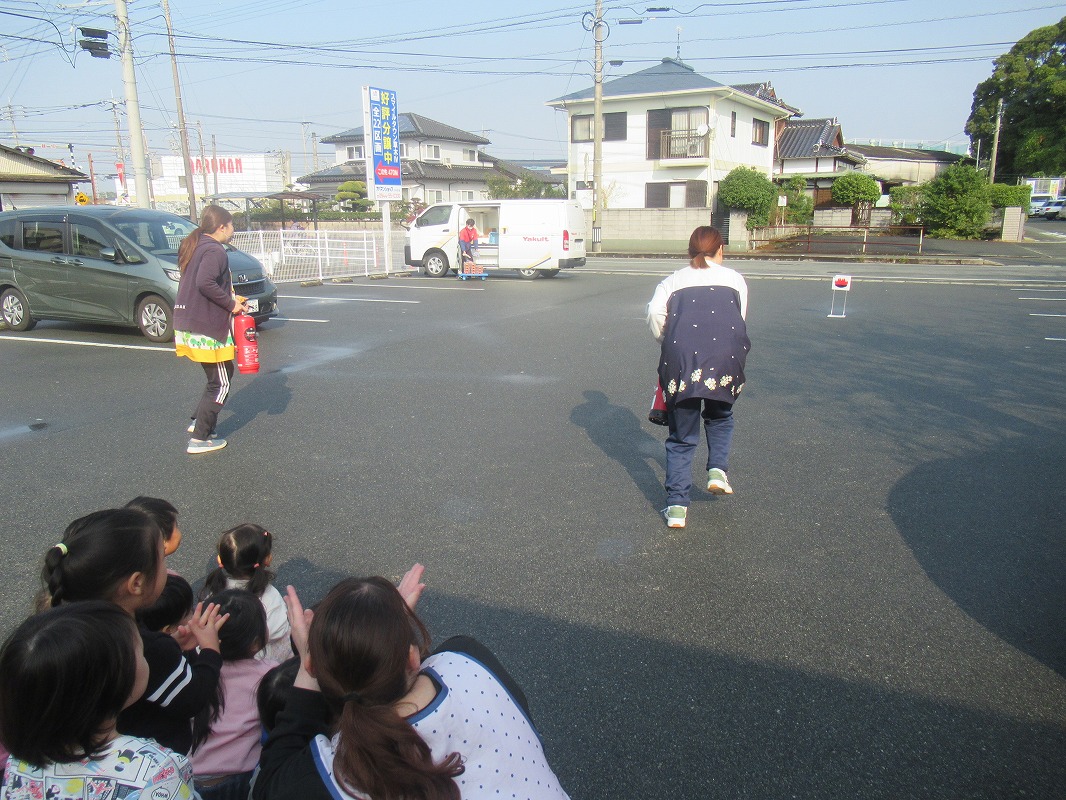 毎月一回実施している避難訓練が11月25日(火)10時から行われました。今回は、近隣からの出火を想定し、マイク放送をしっかり聞いて、慌てず駐車場に避難するという火災による訓練でした。慌てず落ちついて避難ができました。
