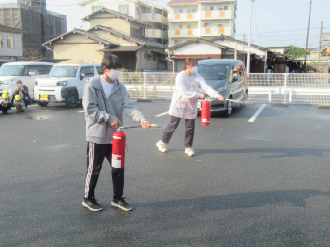 毎月一回実施している避難訓練が11月25日(火)10時から行われました。今回は、近隣からの出火を想定し、マイク放送をしっかり聞いて、慌てず駐車場に避難するという火災による訓練でした。慌てず落ちついて避難ができました。