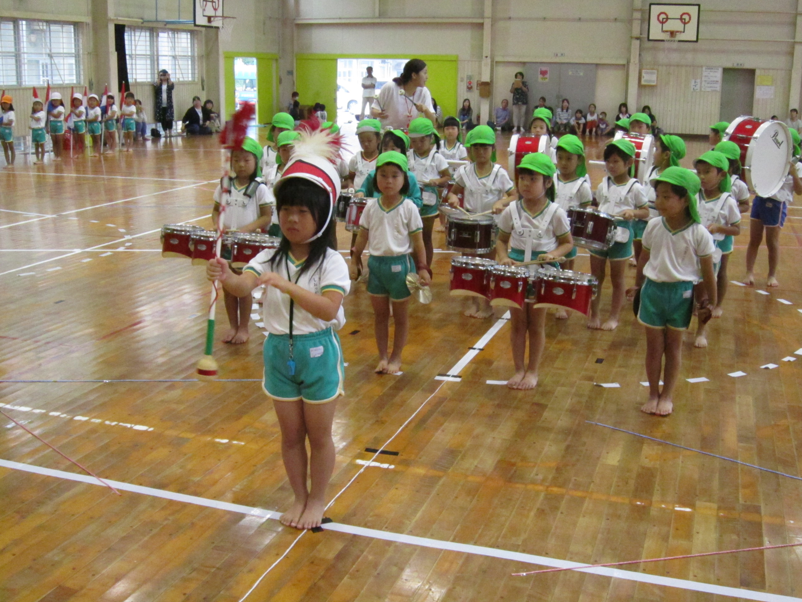 平成29年9月16日(土)、羽山台小学校の体育館で、すみれ組(年長)ときく組(年中)は、日本総合音楽研究の指導の方によるマーチング指導がありました。
